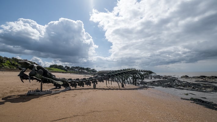 Am Nachmittag spazieren wir mehrere Stunden gemütlich dem Strand entlang, bis hinauf zur Autobrücke über die Loire über die auch wir gefahren sind. Die Loire ist hier bei Flut fast einen
