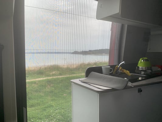 hinzustellen. Zudem liegt er ziemlich abgelegen. So konsultieren wir die App P4N und finden direkt am Meer in Locquirec einen CP der offen hat. Wir bekommen einen Platz direkt am Strand und