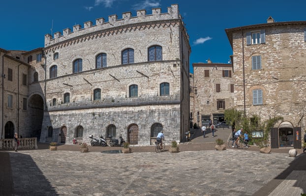 Es ist ein mittelalterliches Städtchen mit viel Charme. Offensichtlich steht es nicht im Fokus der vielen grossen ausländischen Busreisen. Es geht überall sehr entspannt zu und her. An der Piazza setzen wir uns an einen der vielen freien Tische, trinken ein Glas weissen Wein und essen eine Kleinigkeit.