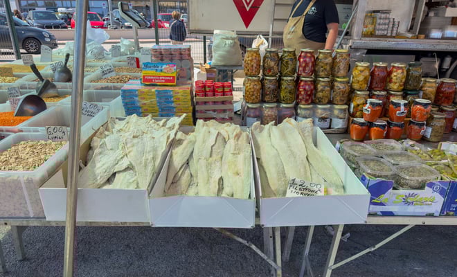 Nachdem wir den Markt abgeklappert haben, gehen wir zum Einkaufen in den Supermarkt. Unser Kühlschrank ist beinahe leer und nachdem sich der Camping eigene Markt als Totalausfall erwiesen hat, müssen wir das hier erledigen. Wir brauchen Fleisch für auf den Grill, Brot, Wein und Gemüse.