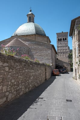 In Assisi spazieren wir wieder durch die Gassen und besuchen Kirchen, die wir gestern ausgelassen hatten. Ansehen kann man sich in Assisi eigentlich nur Kirchen. Heute war noch die Kirche und die Krypta der heiligen Klara dran. Sie lebte in der gleichen Zeit wie Franziskus. Danach sitzen wir draussen in einer Café Bar und beobachten das Geschehen. Immer wieder eine kurzweilige Beschäftigung.