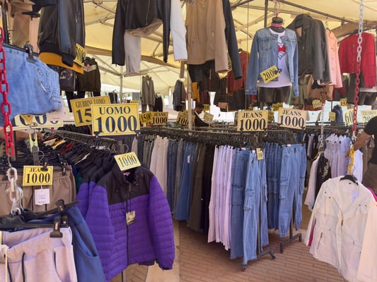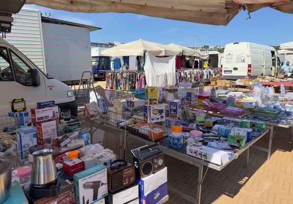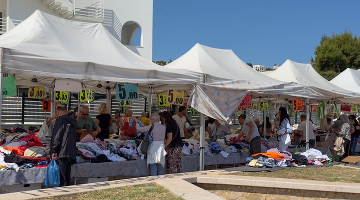 Wir geniessen das Leben auf diesem Camping direkt am Meer. Am Montag fahren wir mit dem Camping Shuttle in das 5km entfernte Vieste. Dort ist heute ein grosser Markt. Es ist kein in meinen Augen kein typischer Touristenmarkt mit Lederwaren, Fleisch und Käse. Hier dominieren die Kleider- und Schuhhändler. Auch Händler mit Haushaltswaren, Teppichen und Vorhängen sind gut vertreten. Die meisten Besucher sind offenbar Italiener die in Vieste wohnen und auf dem Markt günstig einkaufen. Die Preise sind auf dem gleichen Niveau der chinesischen Internet Shops wie Shein oder Temu. Teilweise hat es wirklich schöne Stücke im Vergleich zum Preis von 10 Euro oder weniger.