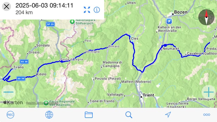 Heute ist unser drittletzter Tag dieser Reise. Wir fahren von Forno im Val die Fiemme nach Tirano. Die Route führt hinüber in das Etschtal nach Neumarkt und dann über die Pässe Tonale und Aprica. Beide kennen wir schon von früheren Reisen. Die Fahrt verläuft entspannt. Das Wetter ändert sich ständig. Mal scheint die Sonne und manchmal giesst es wie aus Kübeln. Kurz vor Tirano füllen wir noch einmal unseren Vorräte bevor wir auf den hiesigen Stellplatz fahren. Auch den kennen wir schon.