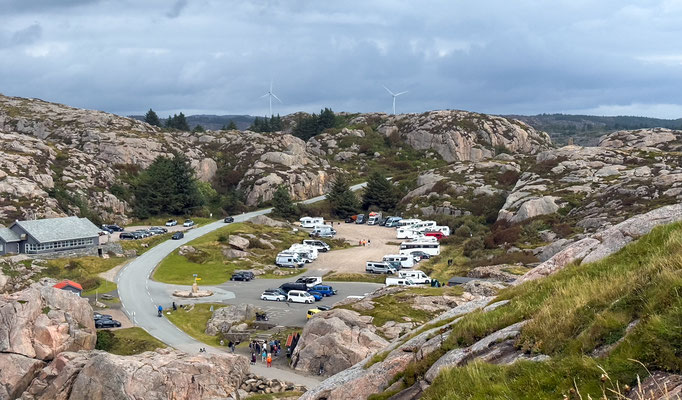 Heute steuern wir unser nächstes Ziel an. Wir fahren zum Leuchtturm Lyndenes Fyr, dem südlichsten Punkt Norwegens. Die Fahrt verläuft sehr entspannt. Es hat nicht viel Verkehr. Ich mache mir ein wenig Sorgen wegen des Parkplatzes. Der Ort gilt als Touri Hotspot und es könnte deswegen sehr voll sein. Die Sorge erweist sich als unbegründet. Wir sind schon um 10.00 da und es hat noch einige freie Plätze für Wohnmobile.