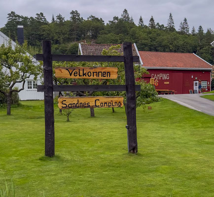 Nach dem Verlassen der Fähre fahren wir in die Nähe von Mandal auf einen Camping. Der liegt ein wenig vom Meer weg und hat eine familiäre Atmosphäre. Zudem ist er, weil er nicht am Meer liegt, auch günstiger. In Mandal direkt am Strand müssten wir das doppelte zahlen.