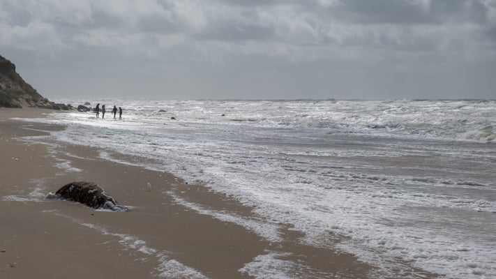 Wir versuchen einen Spaziergang dem Strand entlang. Der starke Wind beendet das Unternehmen aber rasch. Er bläst soviel aufgewirbelten Sand durch