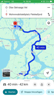Danach beschliessen wir unser Glück auf dem Camping in Stavanger zu versuchen. Wir wissen aus Berichten, dass man eigentlich vor 13.00 dort sein sollte wenn man einen Platz haben will. Reservieren kann man nicht. Wir haben wieder einmal ein riesen Glück. Der Platz ist zwar wie befürchtet ausgebucht aber wir dürfen auf einem kleinen Terrässchen gleich vor der Rezeption stehen bleiben. So stehen wir, im Gegensatz zu allen anderen, fast ein wenig alleine und haben nicht weit zum Sanitärgebäude. Auch der Wifi Empfang ist hier super gut. Wir werden nun sicher zwei, vielleicht auch drei Nächte hier in Stavanger bleiben.