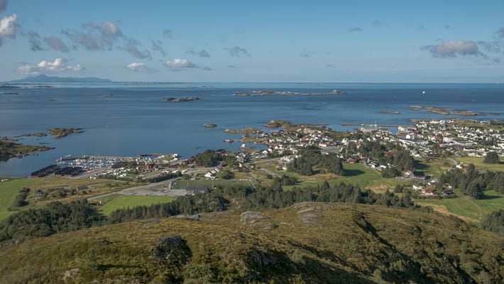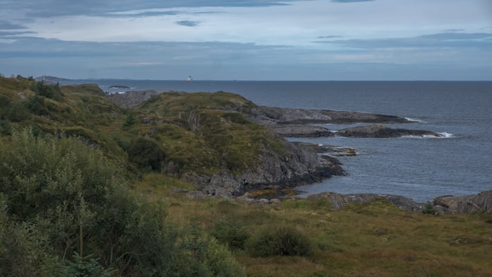 Ein blauer Himmel erwartet uns, als wir die Schiebetüre öffnen. Auch der kalte Wind hat offenbar Pause. So begeben wir am Vormittag auf eine kurze Wanderung. Sie führt uns auf mehrere kleine Hügel hinter Bud. Sind sind nicht hoch bieten aber trotzdem eine schöne Sicht auf die Küste und das Hinterland. 2 ½ Std. später sind wir schon wieder zurück. Am Nachmittag sitzen wir mit kurzen Hosen und T-Shirt an der Sonne. Die Norweger rings um uns in Badehose und Bikini.