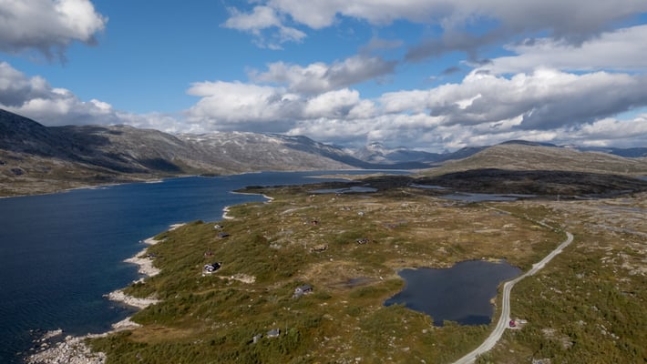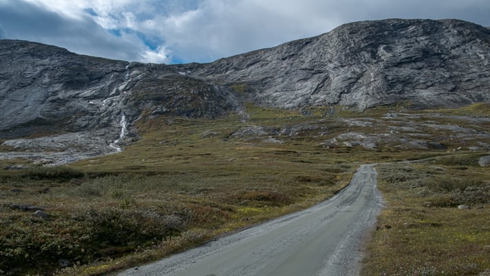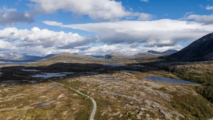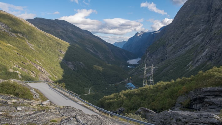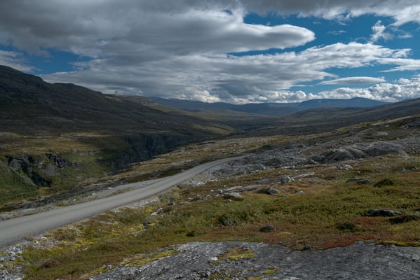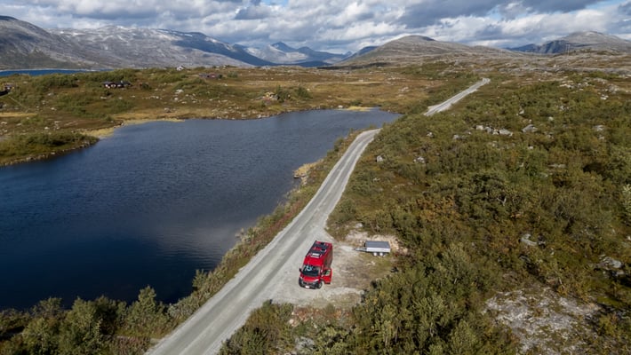 Wir verlassen den PP und das schöne Innerdalen zeitig. Wir stehen nicht gerne lange auf Parkplätzen, wenn bald die nächsten Leute kommen. Heute wollen wir den Aursjövegen fahren. Dabei handelt es sich um eine spektakuläre, größtenteils nicht asphaltierte Bergstraße, die vor allem für ihre raue Landschaft, dramatische Natur und anspruchsvolle Kurven bekannt ist. Sie liegt zwischen Sunndalsøra und Eikesdalen und steigt in steilen Serpentinen bis auf 1000m. Sie ist mautpflichtig und kostet 100 Kronen.