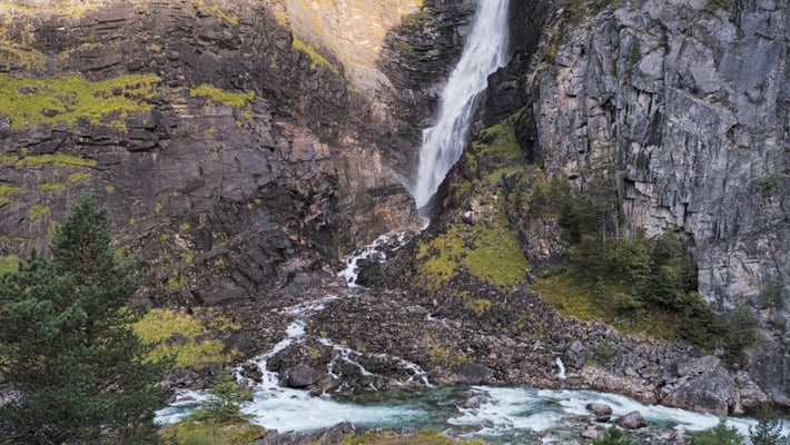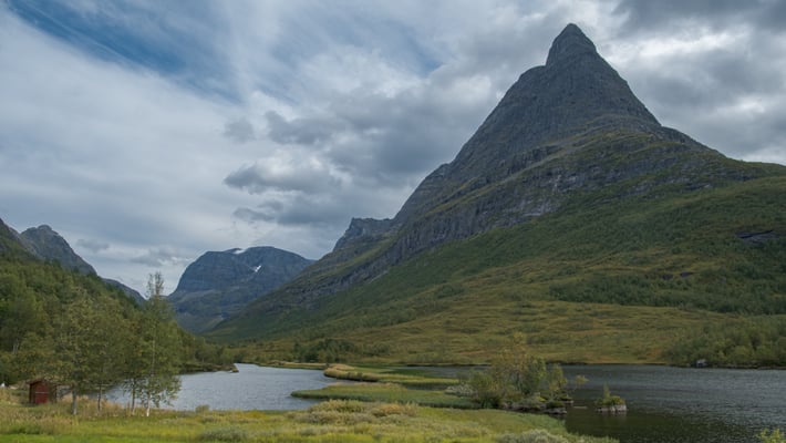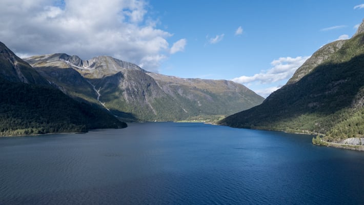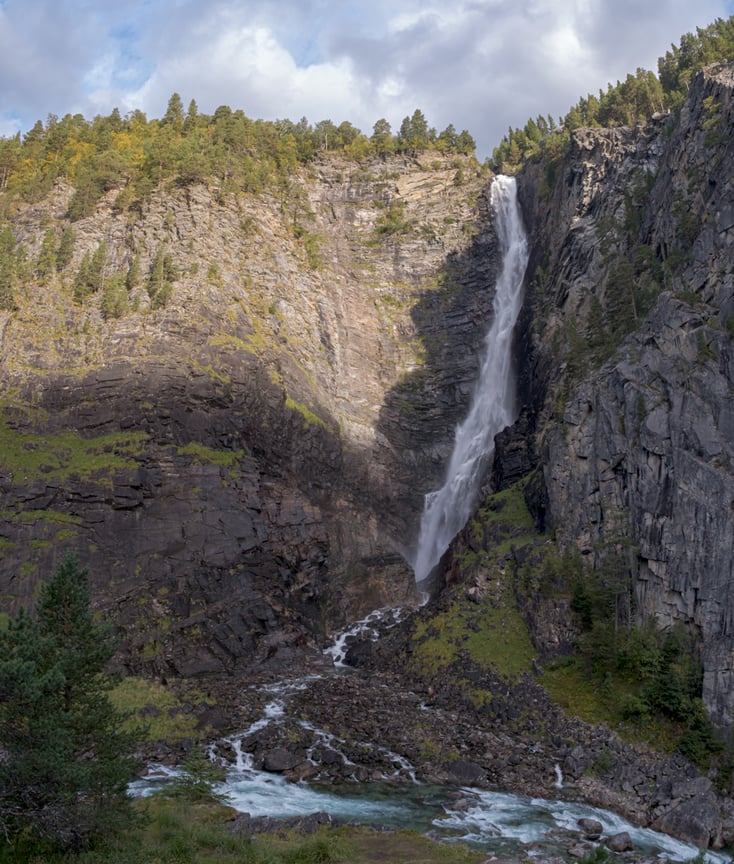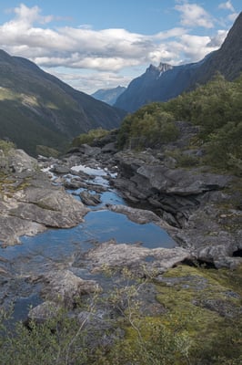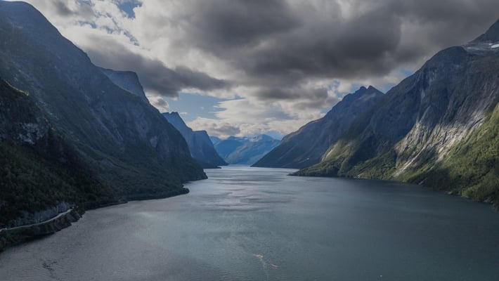 Innerdalen liegt in der Gemeinde Sunndal im Kreis Møre og Romsdal. Das Tal zieht sich tief ins Gebirge hinein und bietet dramatische Kontraste zwischen steilen Felswänden, grünen Almen, klaren Bächen und idyllischen Seen wie dem Innerdalsvatnet. Am Talboden fließt der Ålvundelva, und zahlreiche Wasserfälle speisen ihn von den umliegenden Bergen.