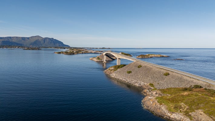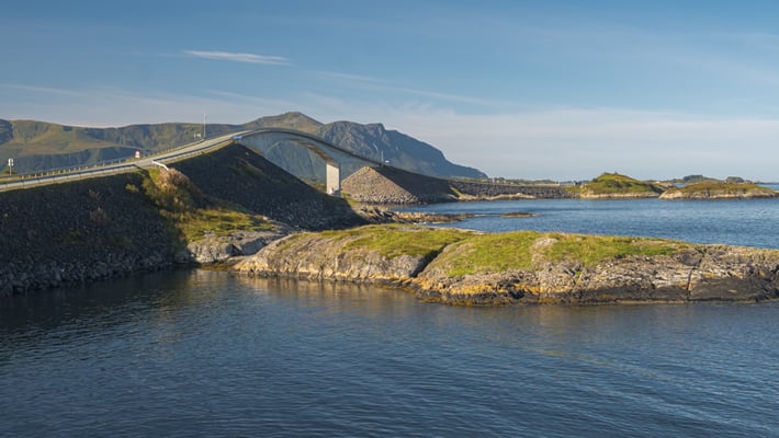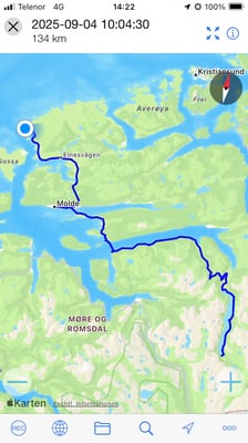 Wir fahren heute vorwiegend auf Nebenstrassen bis kurz vor Andalsnes. Dabei fahren wir auch wieder einmal die Atlantikstrasse. Zum ersten Mal bei schönem Wetter. Die Route über die Atlantikstrasse fällt zwar nicht in die Kategorie der Nebenstrassen aber wir müssen durch Kristiansund und da kommt man hier eben durch. Der heute schönste Abschnitt war die Strecke auf der 666 dem Tingvollfjorden entlang.