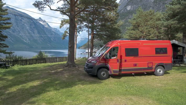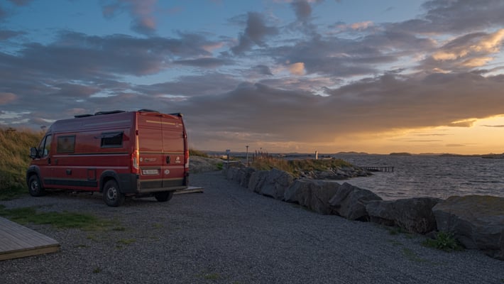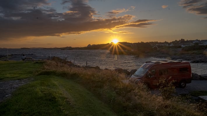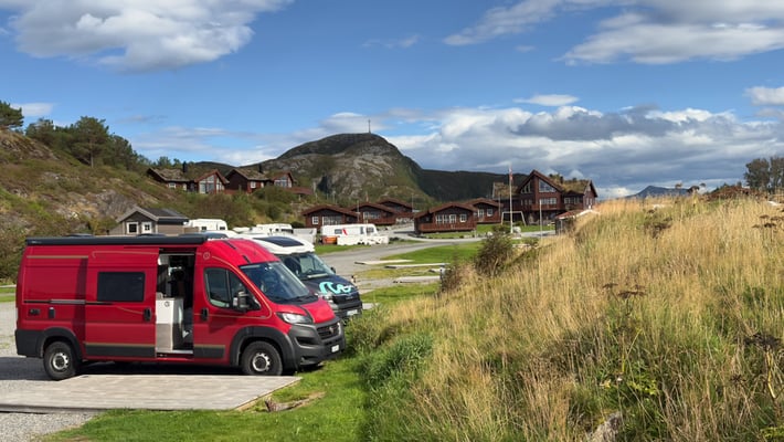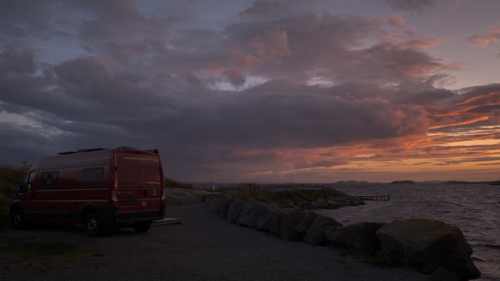 Es ist Wochenende und so kommen, wie wir jetzt schon mehrmals beobachtet haben, die Norweger mit ihren 8 bis 10m langen Riesenschiffen für zwei Tage auf die Plätze. Bis am Abend sind wir mit unserer kleinen Zora regelrecht eingekreist. Kastenwagen oder kleine Teilintegrierte sieht man hier eher selten. Oft sind das dann auch Mietfahrzeuge. Offenbar hat ein Norweger der etwas auf sich hält ein mindestens 8m oder noch besser 10m langes Wohnmobil.
