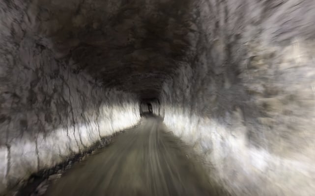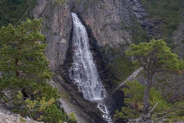 Die schmale Strasse führt zuerst ein Stück in das Tal hinein bevor sie sich eng an die Steilhänge anlehnend, uns über viele Serpentinen auf die Hochebene hinauf leitet. Es ist wirklich eng und ich bin froh, herrscht so gut wie kein (Gegen)Verkehr. Auch bei Nässe möchte ich nicht auf dieser schmierigen Schotterstrasse unterwegs sein. Die Landschaft ist grandios und wild. Die Wasserkraft ist hier überall präsent. Sei es in Form von Staudämmen, Stromleitungen oder Baufahrzeugen.