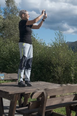 Zuerst besuchen wir einen Rema1000. Wir brauchen Lebensmittel für die nächsten drei Tage. Für länger im Voraus kaufen wir hier in Skandinavien nie ein. Während ich zum Vinmonopolet gehe, sucht Helene eine Friseuse die heute noch freie Termine hat. Sie hat Glück und bekommt gleich Einen. Ich verbringe die Wartezeit in einem Kaffee. Danach besuchen wir ein Sportgeschäft. Die Sachen sind hier nicht billiger als in der Schweiz aber sie haben Produkte, die man bei uns nur schwer oder gar nicht erhält.