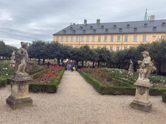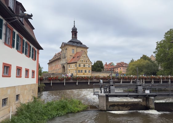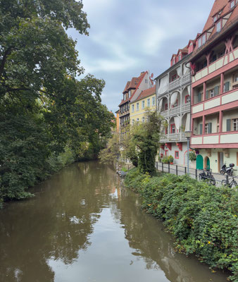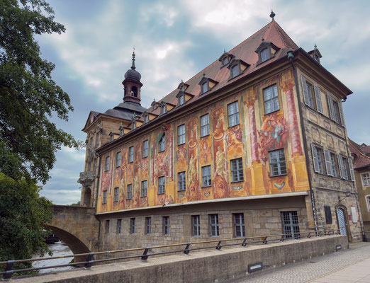 So verbringen wir den ganzen Nachmittag in Bamberg und sehen uns den Ort an. Ziele sind der Kaiserdom mit seinen 4 Türmen, die neue Fürst bischöfliche Residenz in der wir eine sehr informative Führung haben, das alte Rathaus an der Brücke im Fluss usw. Im Rosengarten inter der Residenz hat es ein kleines Restaurant in dem wir eine Pause einschalten. Die geniessen wir bei elsässischem Flammenkuchen und einem Glas Sauvignon Blanc. Danach wandern wir weiter durch Bamberg bis wir am Abend dann genug haben. Der Regnitz entlang kehren wir zur Zora zurück.