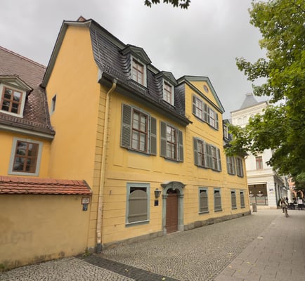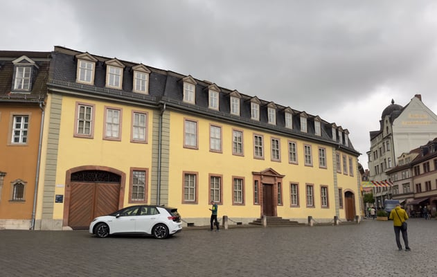 Wir machen uns bald auf den Weg ins Zentrum. Schiller und Goethe sind hier überall präsent. Bei unserem Streifzug kommen wir am Marktplatz und am Goetheplatz vorbei. Natürlich sehen wir die Häuser von Schiller und Goethe und weitere andere Gebäude. Uns gefällt der Ort gut.