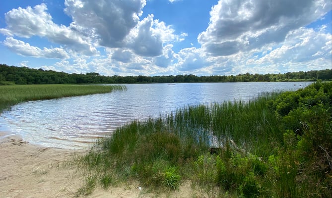 Er liegt ein wenig abseits, in der Nähe eines kleinen Badesees. Es ist eine riesige Wiese von Wald umgeben und nicht parzelliert. Ein Platz auf dem man auch mehrere Tage bleiben könnte.