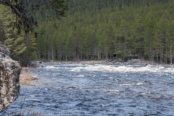 Von Sälen fahren wir weiter in Richtung Särna zum Campingplatz. Wir schauen uns unterwegs noch einen schönen Freistellplatz an einem Fluss an. Bei schönem Wetter wären wir gerne dort geblieben. Die Fahrt hinunter ans Ufer ist aber ein wenig steil und rutschig. Wir haben, genau wegen solchen unangenehmen Überraschungen oben an der Strasse parkiert, um uns den Platz anzusehen. In der Nacht sollte es zudem weiter viel regnen und so war uns das Risiko, an der Ausfahrt hängen zu bleiben, zu gross.