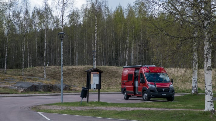 Bevor wir wieder gehen essen wir im Schloss Café noch ein paar Süssigkeiten und nehmen einen Kaffee. Die Cannelbullar sind einfach köstlich. Überhaupt haben die Schweden köstliches Gebäck. Etwas, dass wir vermissen werden, wenn wir wieder zu Hause sind. Pünktlich verlassen wir unseren PP wieder. Nun stellt sich die Frage, ob wir einen Freistellplatz aufsuchen den wir in der App gefunden haben oder einen kostenpflichtigen SP aufsuchen, der auch gut aussieht. Wir entscheiden uns für den SP. Bezahlen müssen wir an einer 800m entfernten Tankstelle. In der Nebensaison ist sehr oft niemand vor Ort, so auch hier. Möglich wäre oft auch die App Swish. Da man dafür aber ein schwedisches Bankkonto braucht funktioniert das für ausländische Gäste nicht. Der Platz ist ok, abends kommt noch die Betreiberin vorbei und bringt allen 3 Besuchern eine Süssigkeit vorbei.
