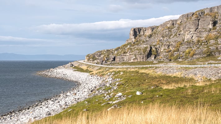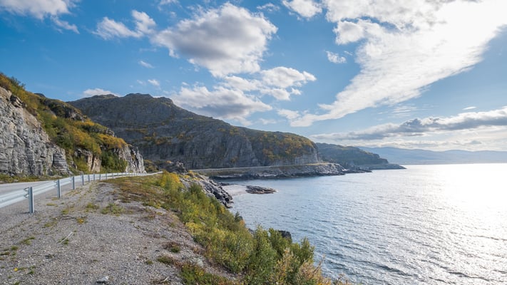 Wir fahren weiter über die wunderschöne Küstenstrasse bis nach Havoysund. Sie ist als besonders schöne Landschaftsroute markiert. In Havoysund machen wir kurz Halt, machen uns aber bald wieder auf den Weg zurück und weiter nach Hammerfest. Das Fahren durch die schönen Landschaften macht Freude. Der Indian Summer hat begonnen und dem entsprechend farbenfroh präsentiert sich die Landschaft. Es herrscht wie immer sehr wenig Verkehr und so können wir gemächlich dahin bummeln.