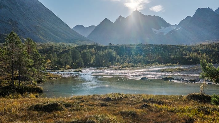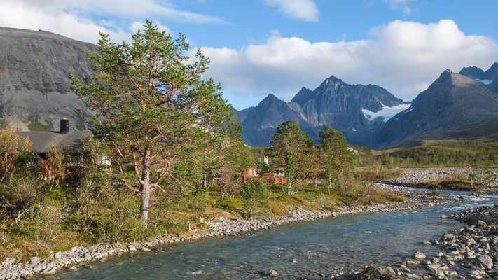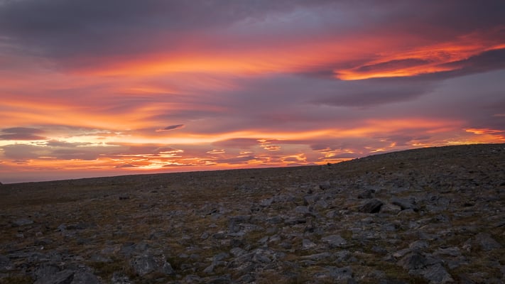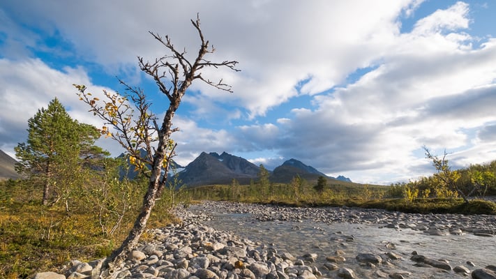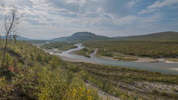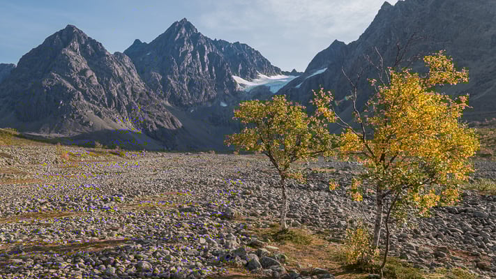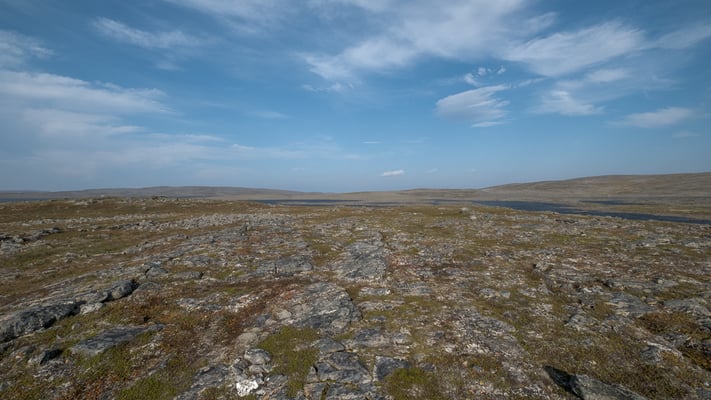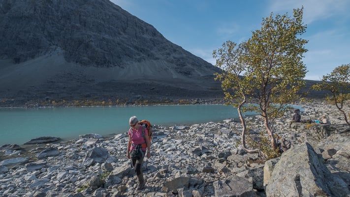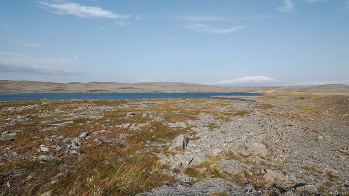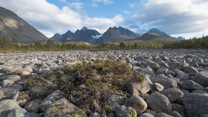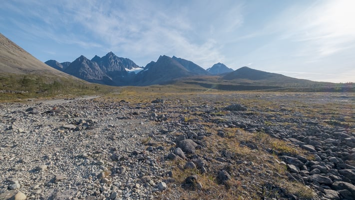 Wir lassen die Zora heute auf dem PP stehen und machen eine Wanderung zum Blåisvatnet. Auf deutsch Blausee. Offensichtlich gibt es diese auch an anderen Orten. Die Strecke ist mit 4Km nicht sehr lang. Dafür führt der Pfad über lange Strecken über Geröll. Das sind oft grössere runde Blöcke auf den das Wandern mühsam ist. Die Szenerie ist dafür wunderschön. Die Berge der Lyngenalpen sind steil und schroff und haben auch kleinere Gletscher. Unten auf der Ebene weiden Rentierherden.