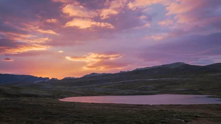 Auf dem Weg zurück machen wir einen Abstecher zu einem weiteren kleinen See, dem Aspevatnet. Der wird von den meisten Wanderen links liegengelassen. Zu unrecht wie wir meinen. Von dort sind wir dann schnell wieder zurück in der Zora.