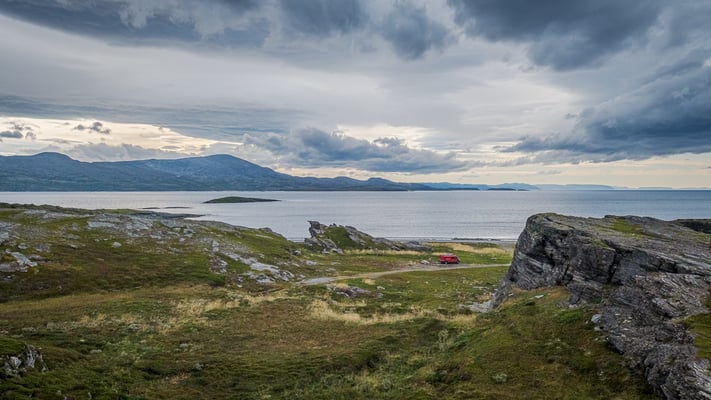 Helene findet einen Coiffeur Salon und lässt sich dort die Haare schneiden. Nachdem auch diese Pendenz erledigt ist, fahren wir auf der E6 südwärts. Wir wollen in den Lyngen Alpen eine Wanderung zum Blausee machen. Wir schaffen aber heute nicht mehr die ganze Strecke und machen Halt auf einem kleinen Camping direkt am Fjord.