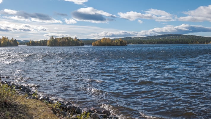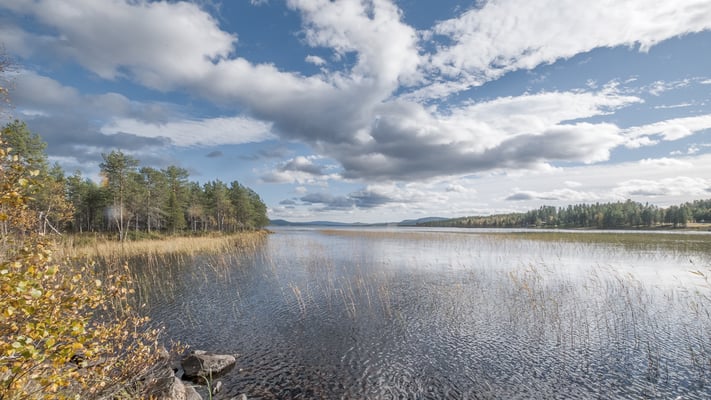 Danach fahren wir nach Arjeplog. Wir benutzen aber nicht die 95 von Arvidsjaur her, sondern wir ziehen heute kleine Nebenstrassen vor. Diese führen uns in einem weit nordwestlich ausholenden Bogen nach Arjeplog. Verkehr hat es so gut wie keinen. Allerdings sind mehr als 95% der Strecke Naturstrasse. Viele Abschnitte sind gut zu fahren. Es hat aber auch viele Abschnitte mit vielen üblen Schlaglöchern. Auf diesen Abschnitten fühle ich mich hinter dem Steuer wie in einem Videospiel. Für jedes Loch das ich treffe, gibt es einen Minuspunkt. Trotzdem geniessen wir die wunderbare herbstliche Landschaft. Wir sehen unzählige Seen, Flüsschen und Moorlandschaften. Wir halten einige Male an, um Fotos zu machen und auch für unsere Mittagspause finden wir einen Traumplatz.