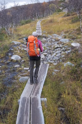 Heute Morgen diskutieren in welche Richtung es weitergehen soll. Das Wetter um Tromsö, Lofoten und der Helgelandküste ist gemäss Prognose für die nächsten 10 Tage sehr schlecht. Auch im Norden von Schweden um Abisko sieht es nicht besser aus. In Finnland hingegen wird es gut bleiben. So beschliessen wir nach Kilpisjärvi zu fahren. Dort hat es einen Camping von dem man direkt auf den Saana wandern kann. Der Weg startet gleich beim Camping.