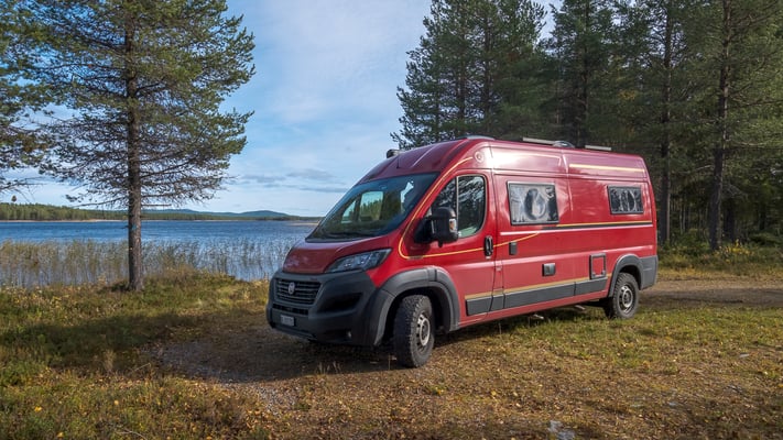 Nun können wir den Abend geniessen. Wir haben hier oben eine bombastische Aussicht. Leider verhindern dicke schwarze Wolken einen schönen Sonnenuntergang. Ich parke die Zora noch einmal um, so dass sie besser im Wind steht. Das ist es dann für heute. Morgen fahren wir wieder über die Grenze nach Norwegen.