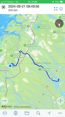 Irgendwann passieren wir die Grenze nach Norwegen. Bei der E6 biegen wir in südlicher Richtung ab. Wir wollen uns den Touri Hotspot der E6 am Polarkreis ansehen. Dort ist aber nichts mehr los. Im Besucherzentrum tummeln sich 4 Angestellte und drei Touristen. Das Restaurant hat bereits Saisonende. Welch ein Kontrast zu den Schilderungen über die Zustände hier während der Hochsaison die ich gehört habe. Wir fahren weiter. Irgendwann finden wir in der Nähe der Strasse einen Platz wo wir über Nacht bleiben.