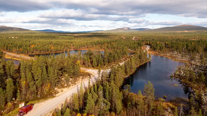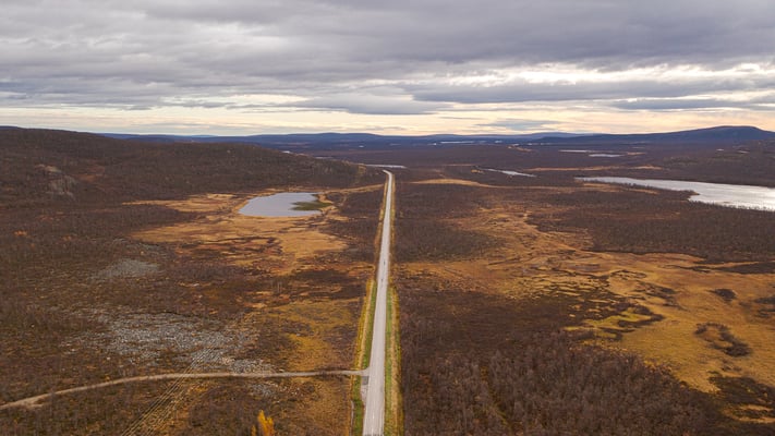 Wir fahren hinunter nach Gällivare. Wir halten einige Male an, um kurz die Drohne fliegen zu lassen. Ansonsten bin ich darauf erpicht die Strecke so schnell wie möglich hinter uns zu bringen. Beim Grenzübergang bei Karesuando halten wir kurz an. Dort steht eine Kirche, die nördlichste von Schweden.