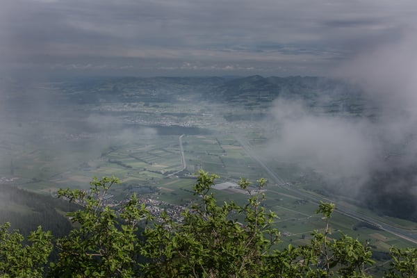 Die Sonne hat inzwischen die Oberhand gewonnen und treibt die Feuchtigkeit aus dem Tal nach oben. Das Hirzli ist ein prächtiger Aussichtspunkt. Ein Biwak hier oben, garniert mit einem schönen Sonnenuntergang, ja das wäre was für den Spätsommer.