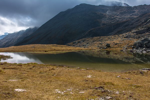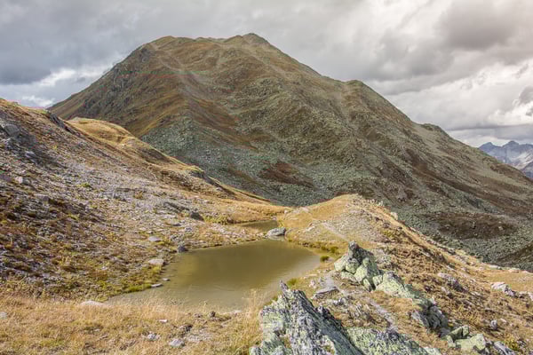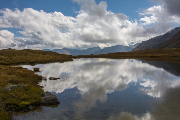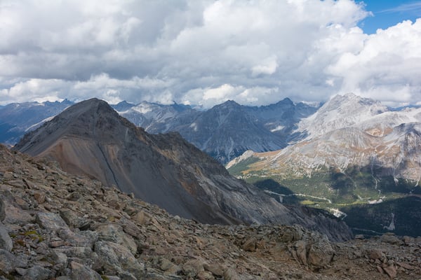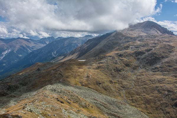 Der Lai da Chazfora ist unser nächstes Etappenziel. Man könnte zwar schon unterhalb des Seeleins zum Piz Dora abbiegen, wir wollen diesen schönen Ort aber nicht verpassen und nutzen ihn gleich für eine längere Pause. Auf den letzten 350 Hm hinauf zum Gipfel zog sich die Gruppe dann weit auseinander. Auf dem Gipfel bleiben wir nicht sehr lange. Es weht ein kalter Wind und eine gemütliche Stimmung will nicht aufkommen. Nach kurzen Diskussionen über die Identität verschiedener Gipfel machen wir uns wieder an den Abstieg. Dieser verläuft weitgehend auf der Aufstiegsroute. Den Lai da Chazfora lassen wir jetzt aus und gehen direkt zur gut sichtbaren Hütte unterhalb des Punktes 2600. Weiter unten gäbe es noch die Möglichkeit den Lai Zoppà zu besuchen. Aber da dieser vermutlich wegen der regenarmen Sommermonate sowieso ausgetrocknet ist, lassen wir auch das bleiben und steigen direkt hinunter zu unserem Ausgangspunkt.