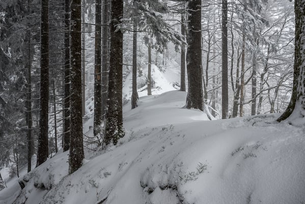 Auf der Strasse wandern wir zu Beginn gemächlich auf der geräumten Strasse hinauf in Richtung Mettelschwand. Im oberen Teil kürzen wir ab steigen direkt hinauf. Dabei meiden wir die mit frischem Triebschnee gefüllten Mulden. Der Wind bläst immer noch stark und sorgt so für eine angenehme Frische im Gesicht ;-) Oben erreichen wir den Weg. Unter den grossen, vom Wind herauf geblasenen Schneemengen ist er aber fast nicht auszumachen. Jemand hat ihn mit blauen Stangen markiert. Der Schnee ist locker, vereinzelt versinken wir bis zu den Knie ein. Ab dem Punkt 1231 verläuft die Route oft im Wald. Hier hat es weniger Schnee und wir kommen nun schneller vorwärts. Vor der Stächelegg ist das Gelände wieder offen, entsprechend hat es wieder viele Verwehungen und auch der Wind ist wieder da.