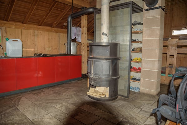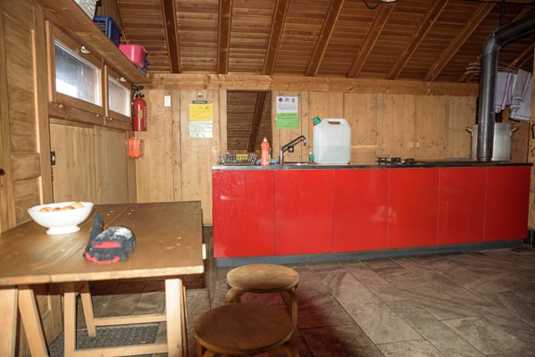 Die Mittagspause machen wir in der eiskalten Hütte. Draussen ist es trotz der vielen Sonne wegen des kalten Nordföhns nicht sehr angenehmen. Sie ist gemütlich eingerichtet und Tipp top aufgeräumt. Für die kurze Rast wollen wir aber kein Feuerholz verschwenden. Nach fast ¾ Std. Pause ziehen wir wieder los. Für den Abstieg nehmen wir die gleiche Route wie für den Aufstieg. Das geht nun sehr zügig und nach 2 ½ Std. sind wir schon wieder in Nante
