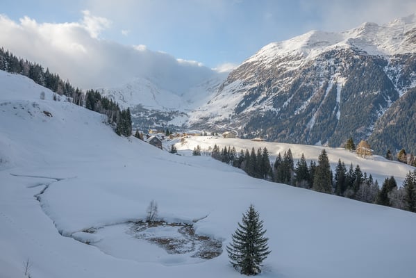 Wir starten in Nante. Parkplätze hat es am Dorfeingang auf der linken Strassenseite genügend. Wir wandern, die Schneeschuhe noch auf dem Rucksack, auf der "Hauptstrasse" durch das Dorf und verlassen es bei einem grossen Hof. Die Route verläuft die ersten 3 Km bis zum Reservoir beim Punkt 692'898/151'577 mehr oder weniger eben. Zudem ist sie noch durchgehend mit einer Pistenraupe planiert worden. Wahrscheinlich um den Zugang zum Reservoir zu gewährleisten.